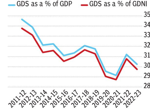 Numbers and their authors often have an odd sense of humour. The CRISIL intelligence report pointed out India’s saving rate of 29% was above the global average and reflected improved income levels. They missed mentioning that this was also the lowest rate in 40 years. Glass half empty? Apparently not. Glass half full. Falling interest rates have given way to riskier investment alternatives. Between 2020 and 2023, household investments in equities and mutual funds nearly increased from ₹1.02 trillion to ₹2.02 trillion.